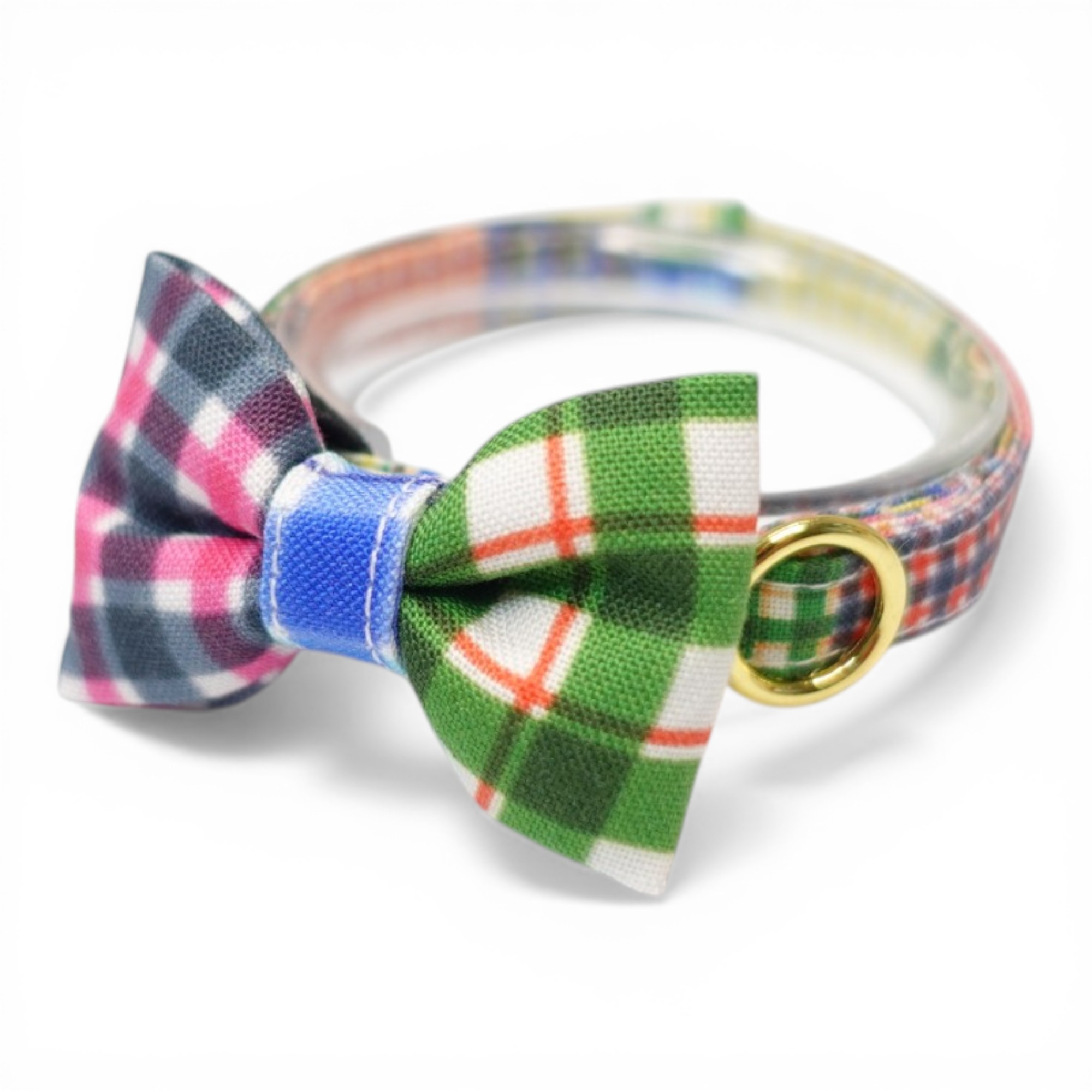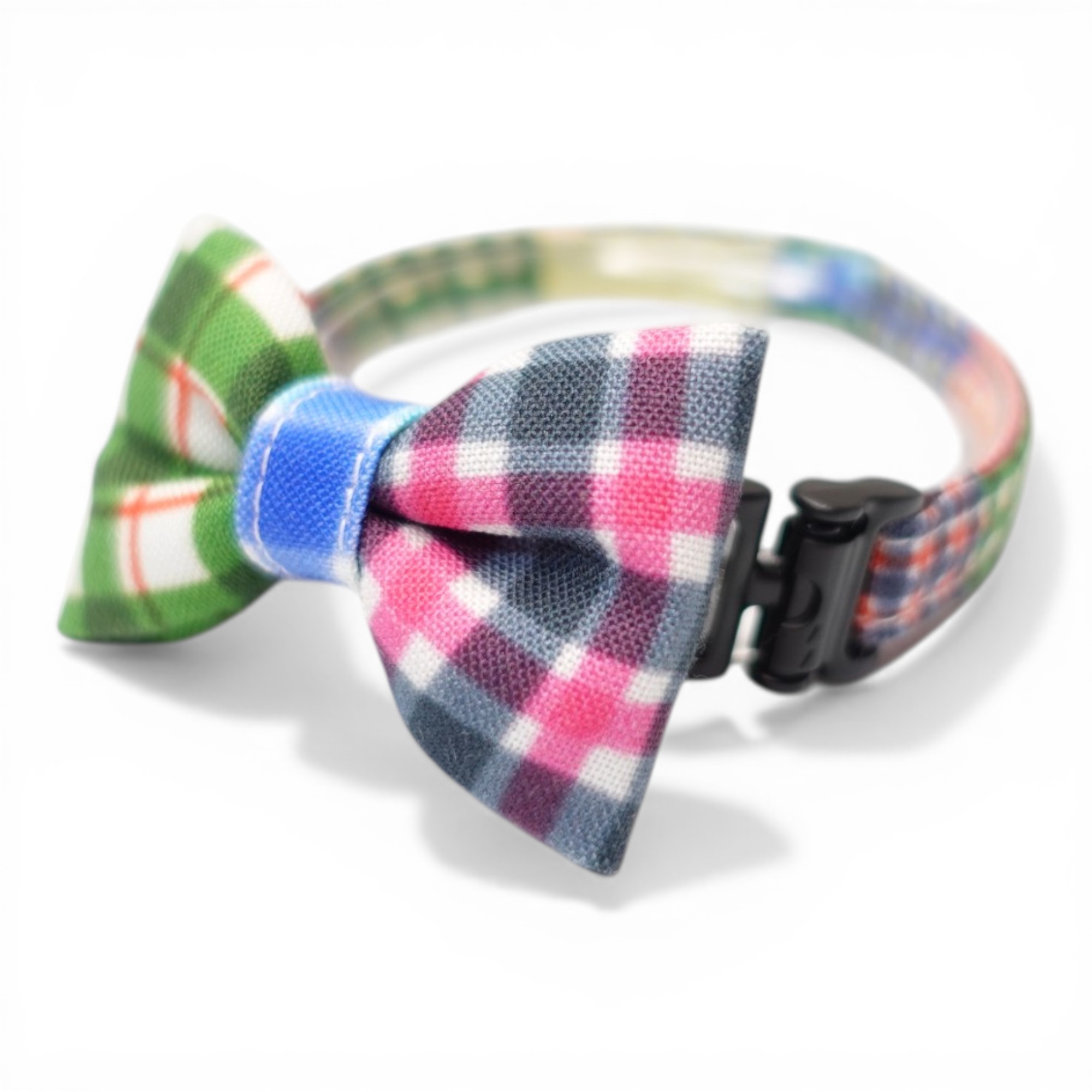 - > 世界にひとつの組み合わせ|左右で柄が異なる パッチワーク風リボン首輪 【限定1点】F柄