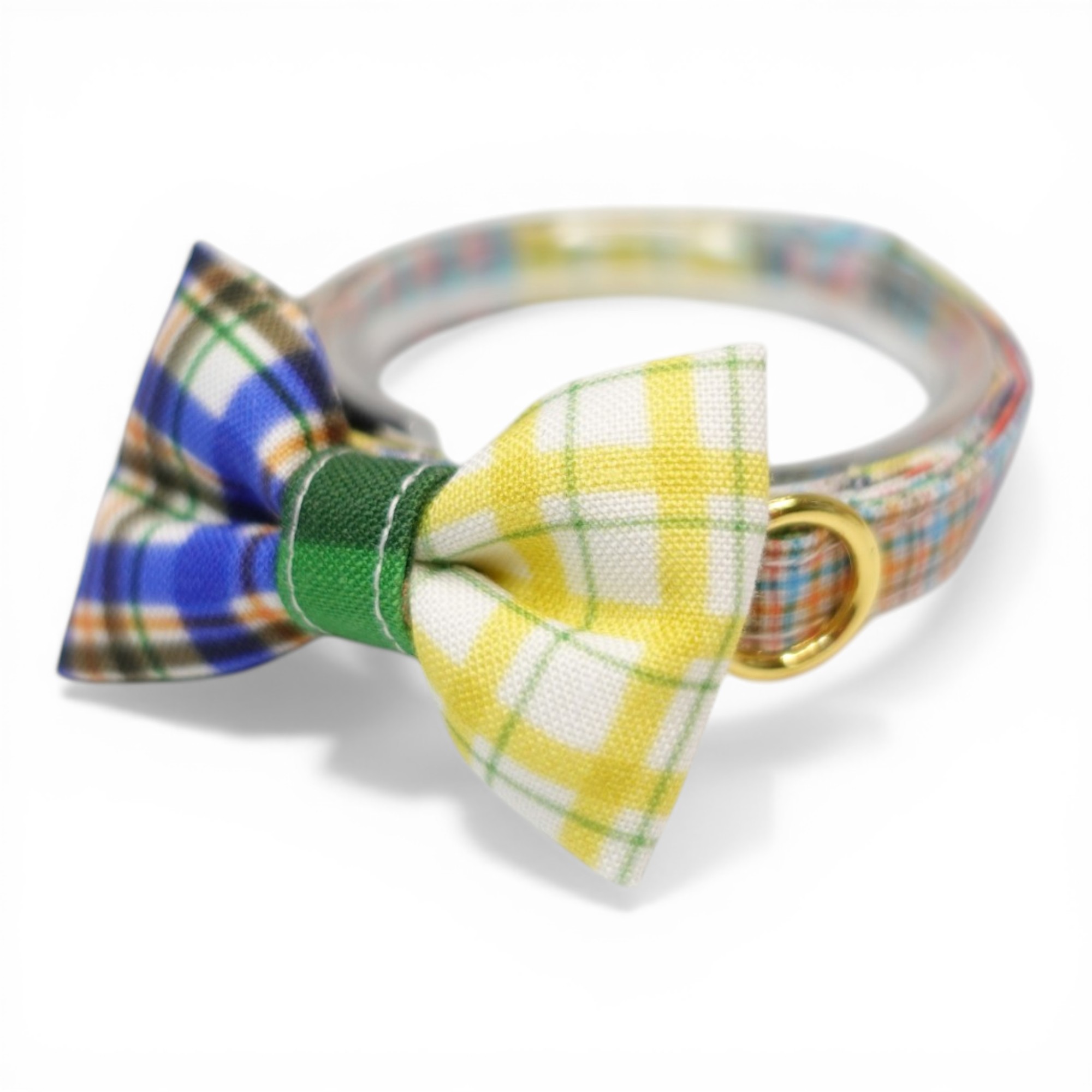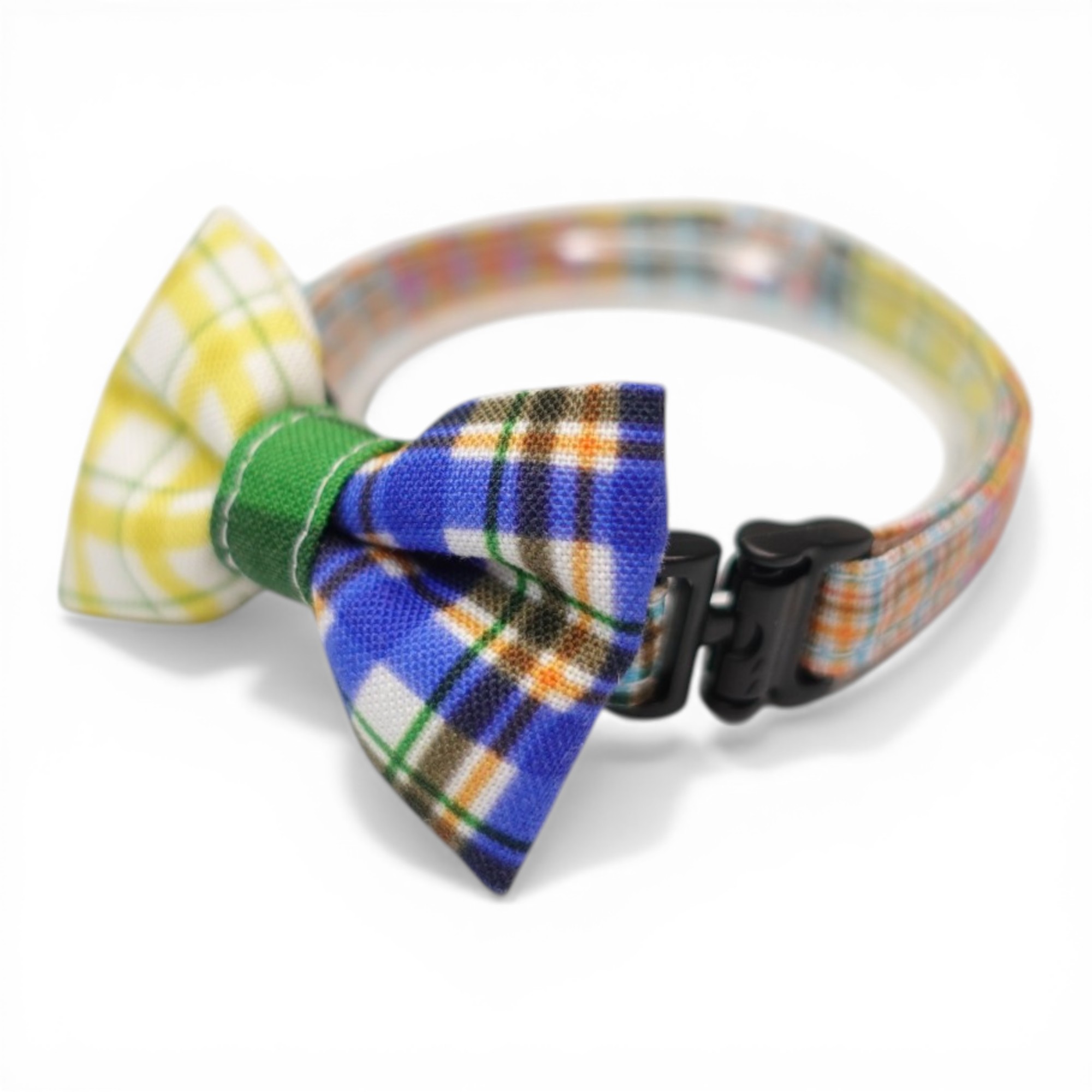 - > 世界にひとつの組み合わせ|左右で柄が異なる パッチワーク風リボン首輪 【限定1点】H柄