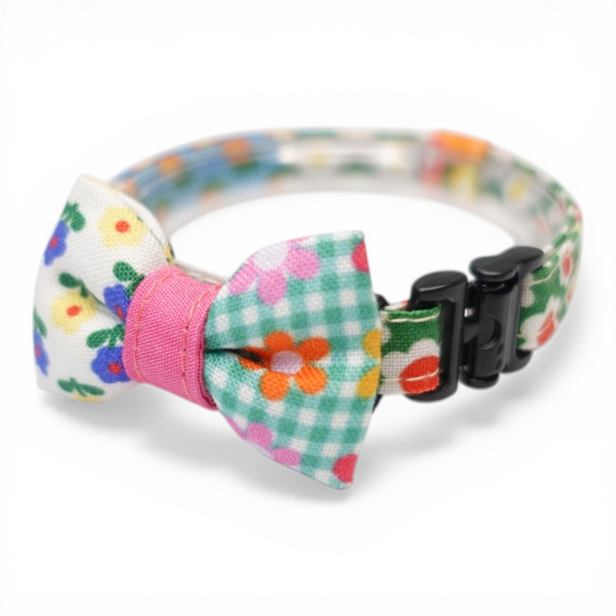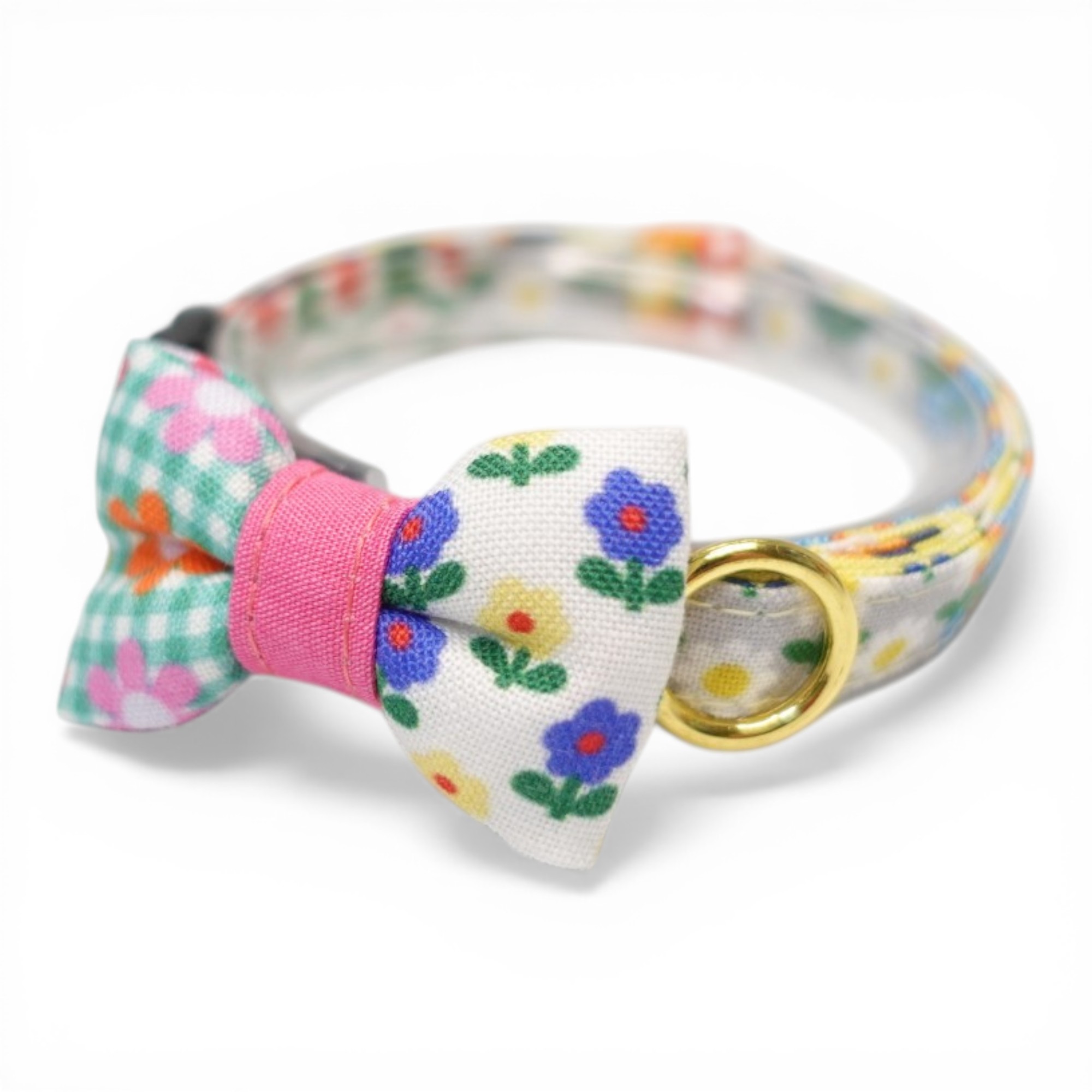 懐かしさをまとう 昭和レトロフラワー|左右で柄が異なるミニリボン首輪 A柄【限定1点】 [ミニレトロ-2]