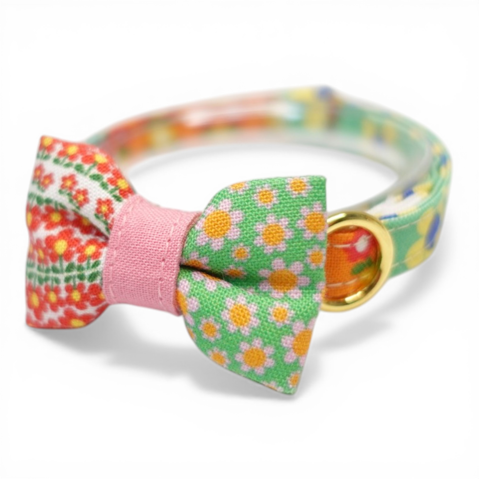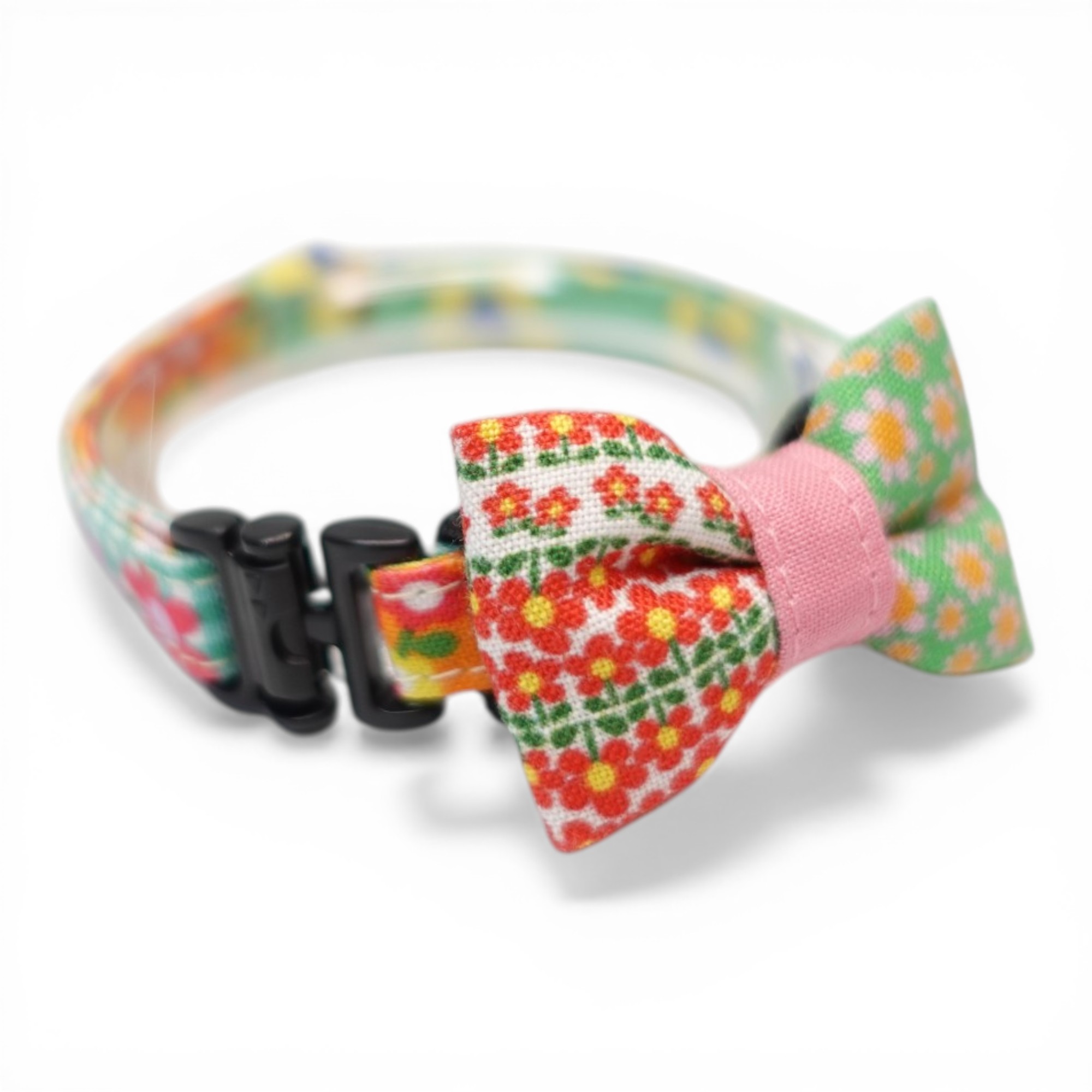 懐かしさをまとう 昭和レトロフラワー|左右で柄が異なるミニリボン首輪 E柄【限定1点】 [ミニレトロ-2]