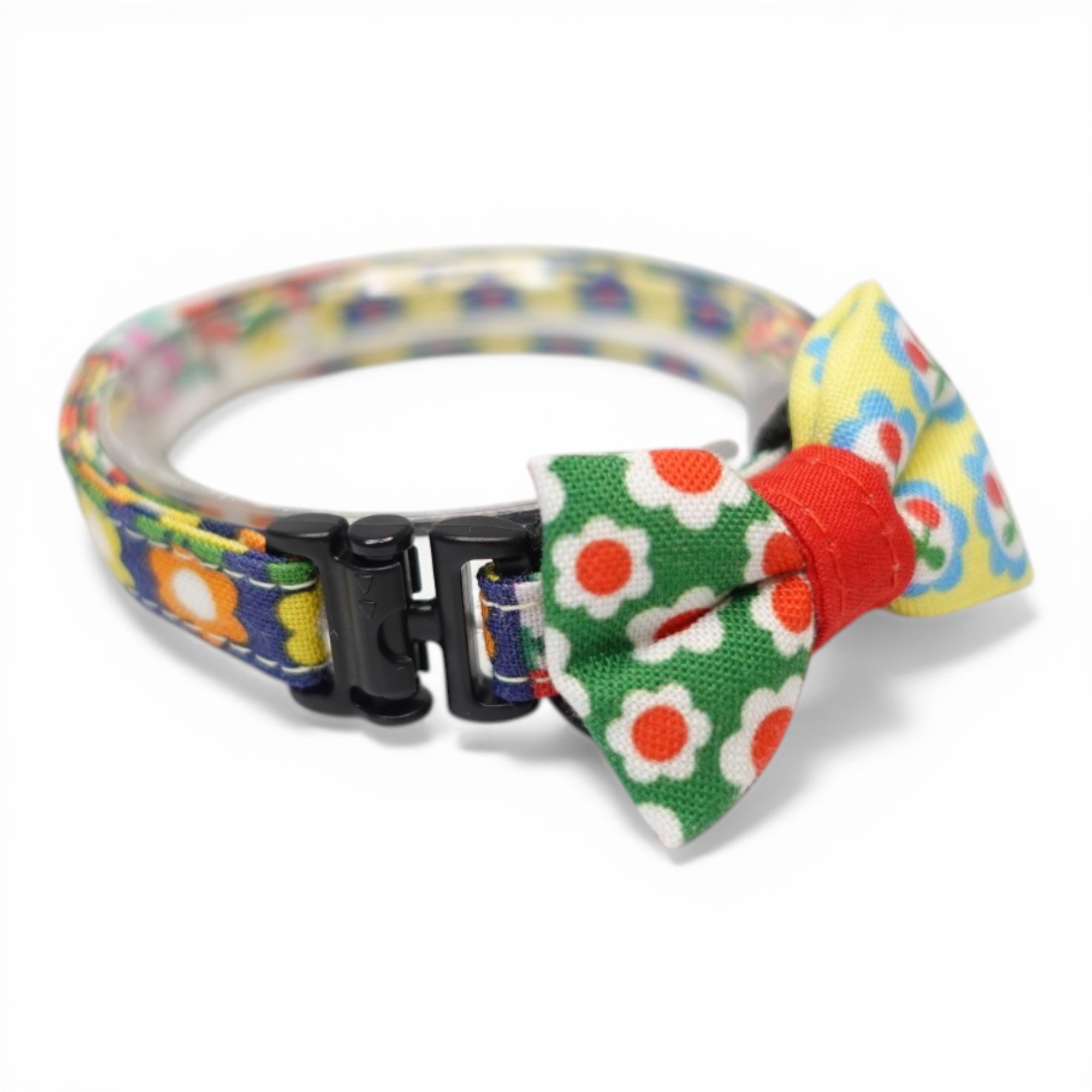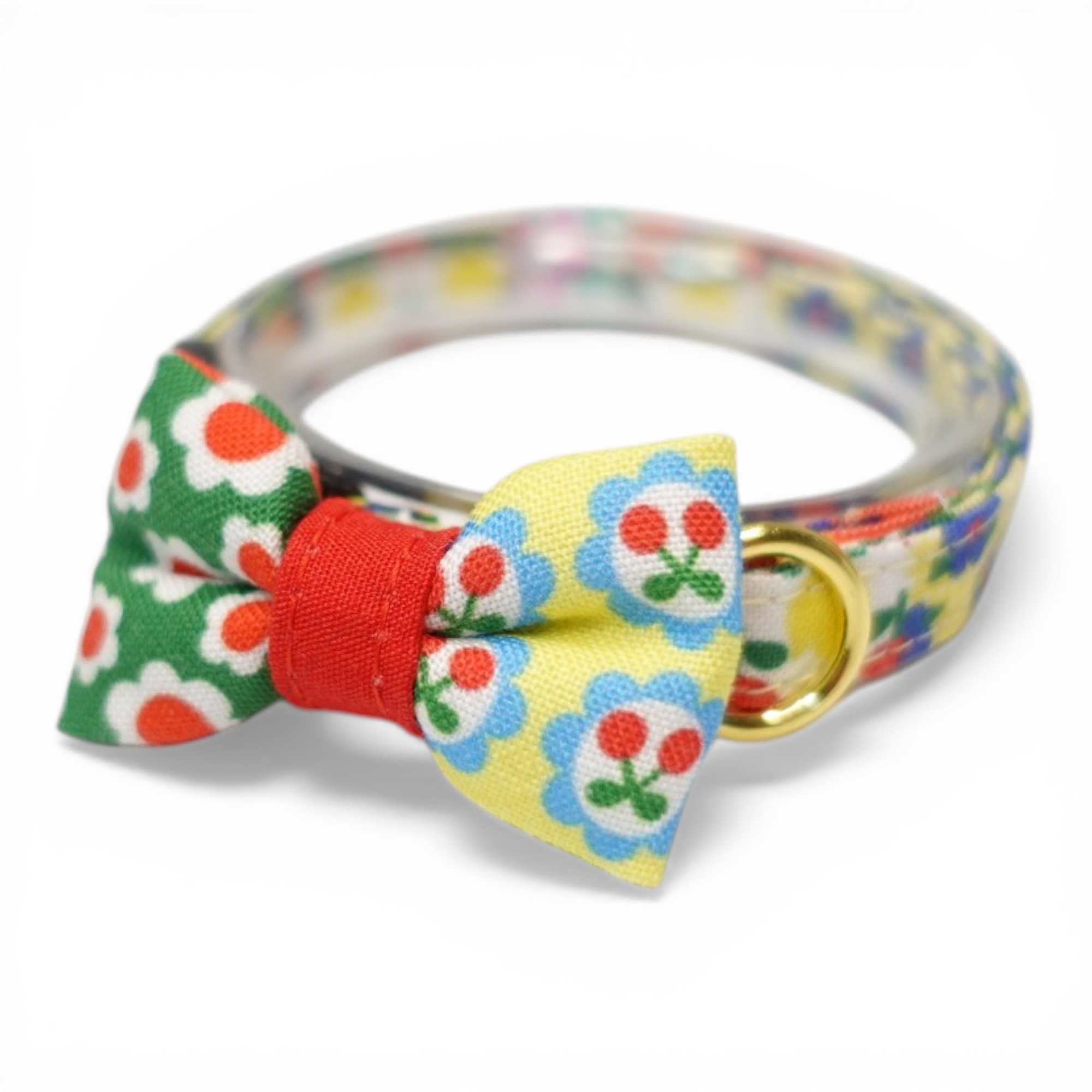懐かしさをまとう 昭和レトロフラワー|左右で柄が異なるミニリボン首輪 F柄【限定1点】 [ミニレトロ-2]