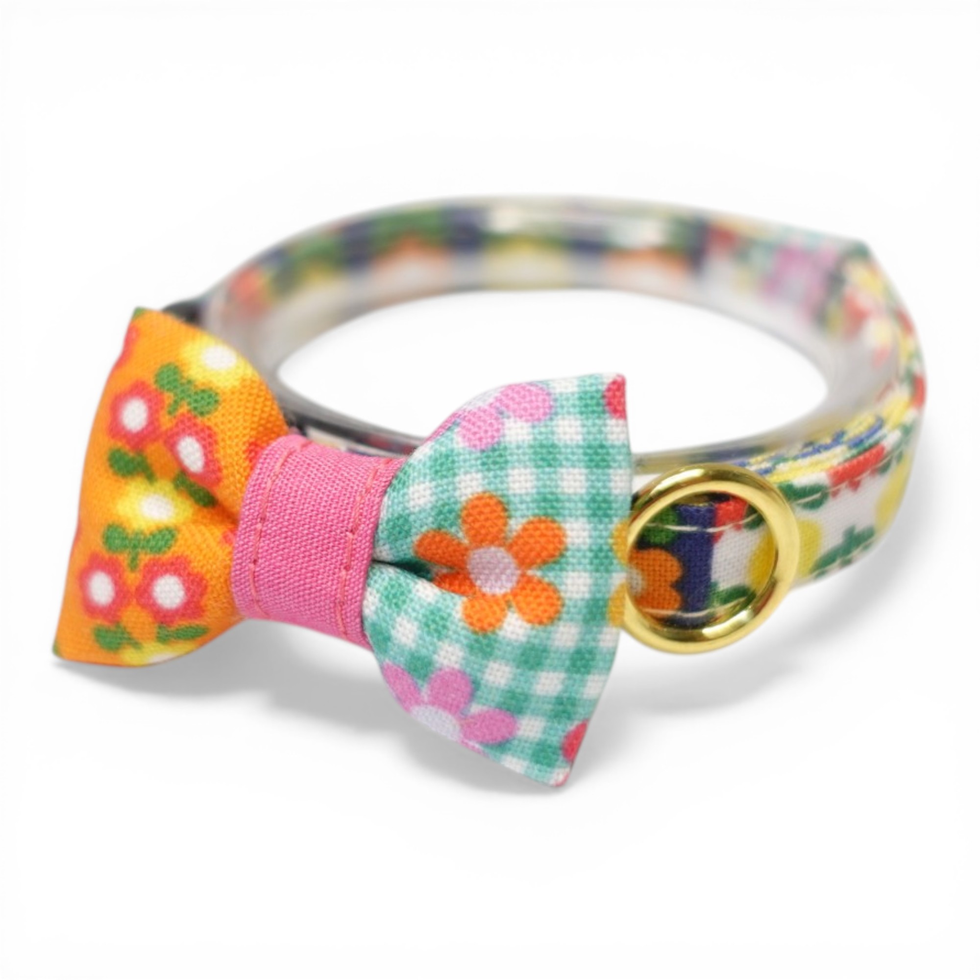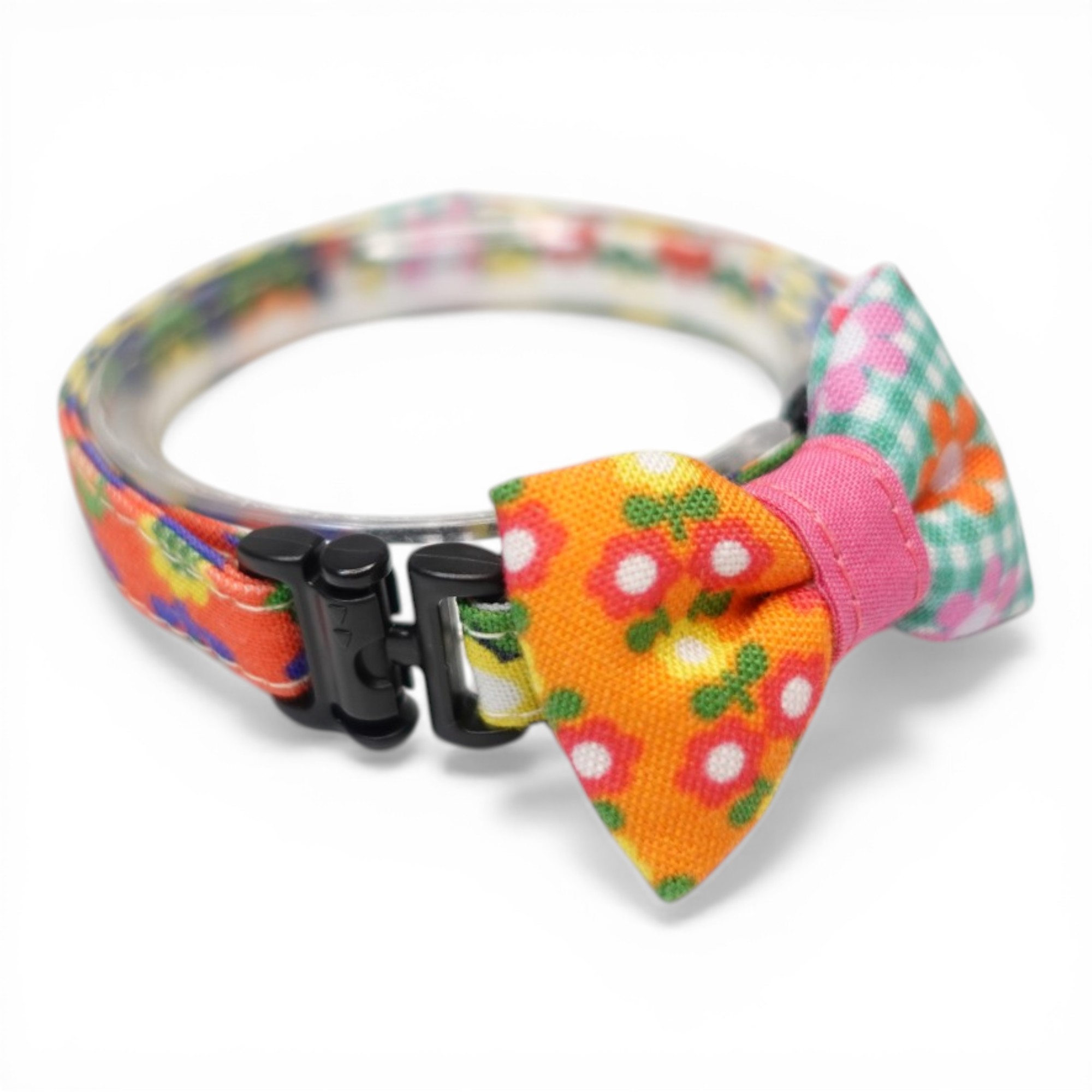 懐かしさをまとう 昭和レトロフラワー|左右で柄が異なるミニリボン首輪 K柄【限定1点】 [ミニレトロ-2]