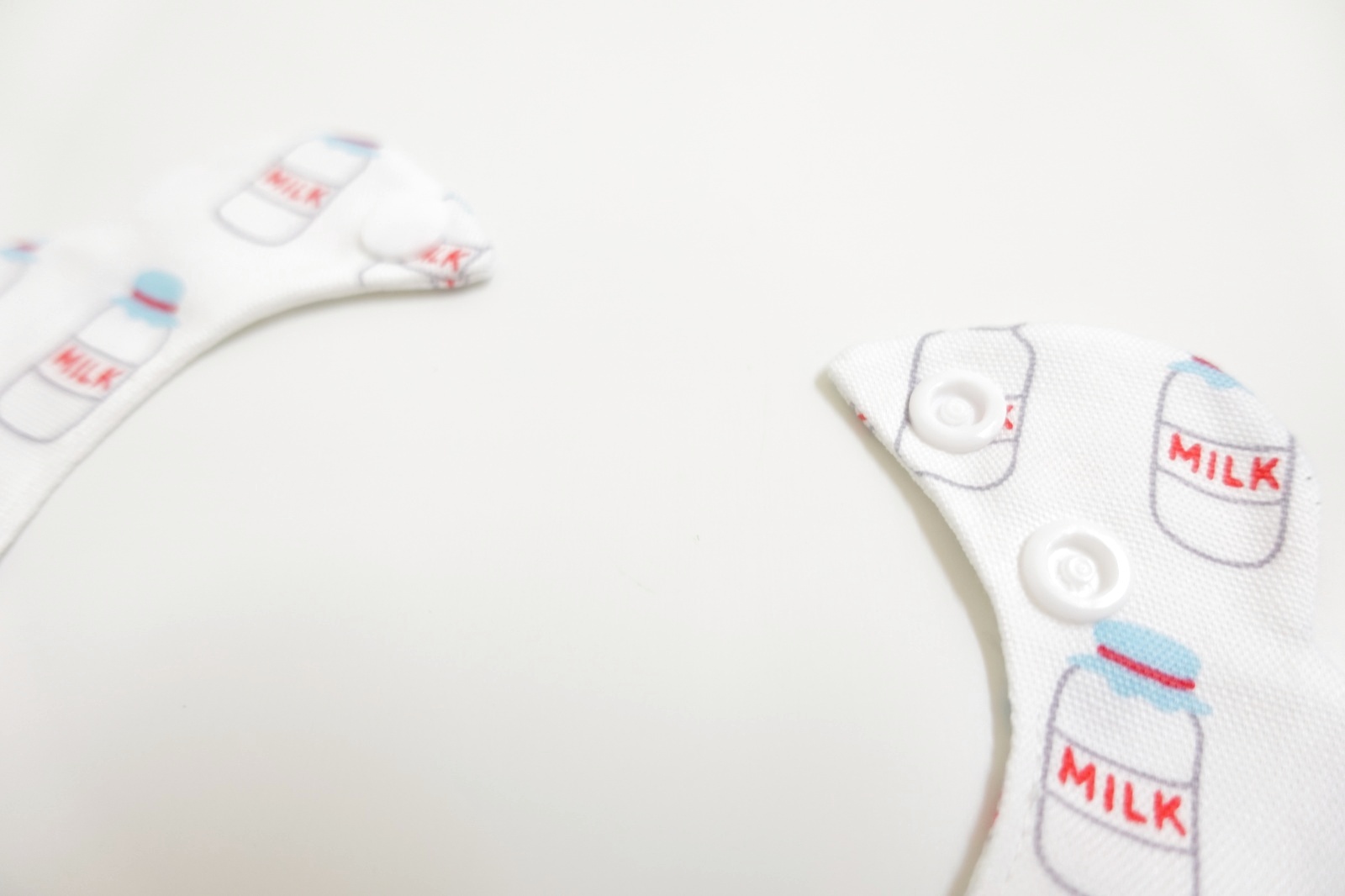 スナップボタンを外さず着脱できるよう安全性にも配慮しています。